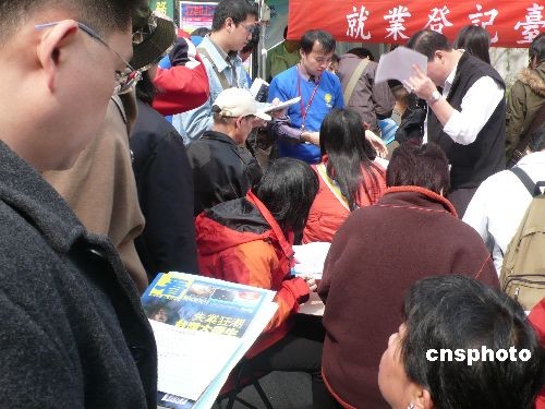 大環(huán)境經(jīng)濟不景氣,臺灣去年十二月失業(yè)率超過百分之五,失業(yè)人口近五十無萬。“主計處”對今年經(jīng)濟成長率的預測為負百分之二點九七。臺北市政府勞工局在二十一日舉行了一場就業(yè)博覽會,釋出兩千多個工作職位,并提供職業(yè)訓練課程供民眾申請。中新社發(fā) 路梅 攝