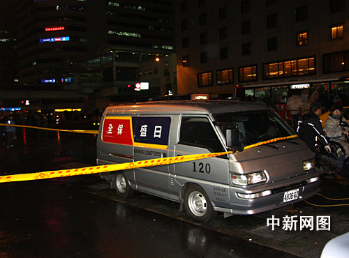 3月6日下午,臺(tái)北市南京東路三段國泰世華銀行復(fù)興分行前發(fā)生銀行搶劫案,一名歹徒在連開6槍,擊傷1名運(yùn)鈔車保全人員后,劫走兩袋共新臺(tái)幣278萬元的現(xiàn)鈔逃逸。傍晚時(shí)分,警方已在案發(fā)現(xiàn)場附近拉起封鎖線。圖為仍停在現(xiàn)場封鎖線內(nèi)的保全公司運(yùn)鈔車。中新社記者 陳立宇 攝