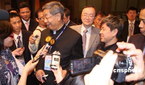 原全國(guó)人大常委會(huì)副委員長(zhǎng)許嘉璐3月21日下午抵達(dá)臺(tái)北,出席“第三屆海峽兩岸客家高峰論壇”。許嘉璐此次訪(fǎng)問(wèn)臺(tái)灣是以葉圣陶研究會(huì)名譽(yù)會(huì)長(zhǎng)的身份。圖為許嘉璐在論壇上受到大批記者和客家鄉(xiāng)親包圍。中新社發(fā) 耿軍 攝