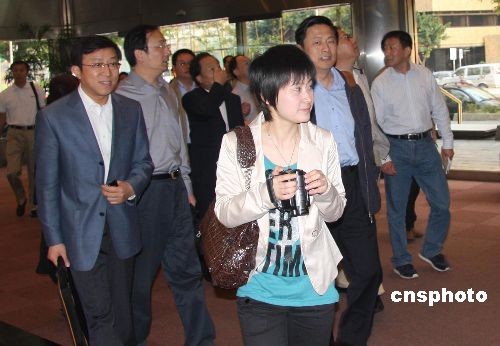 三月二十五日,由十七家大陸中央媒體負責(zé)人組成的訪問團拜訪臺灣《聯(lián)合報》。圖為訪問團步入《聯(lián)合報》報社大樓。中新社發(fā) 耿軍 攝