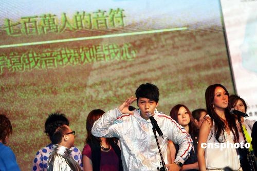 三月二十六日,香港歌手陳偉霆、鐘舒漫與一眾歌手載歌載舞演唱“七百萬人的音符”推介香港音樂匯展。當(dāng)日,由國際唱片業(yè)協(xié)會[香港會]與香港貿(mào)發(fā)局攜手合辦的“第四屆香港音樂匯展”在會展中心舉行。中新社發(fā) 洪少葵 攝