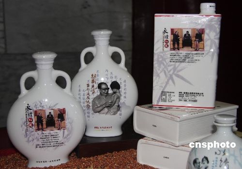 4月13日是蔣經(jīng)國先生百年誕辰,臺灣煙酒公司配合推出3款蔣經(jīng)國百年誕辰紀(jì)念酒。圖為其中一款仿古的白磁提耳瓶,在臺灣陶瓷重鎮(zhèn)鶯歌訂作陶瓷瓶身,裝入臺灣原窖高梁酒,一面印有1986年馬英九擔(dān)任翻譯時,和經(jīng)國先生的合照。酒瓶的另一面印有蔣經(jīng)國先生抱著小女孩的合照,表現(xiàn)蔣經(jīng)國先生的親民形象。中新社發(fā) 耿軍 攝