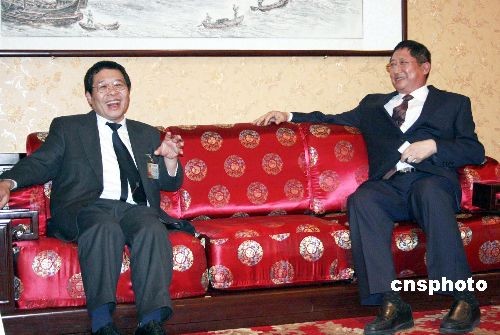 4月20日,天津商會會長張元龍(右一)在天津會見前來參加津洽會的葡萄牙華人總會執(zhí)行長周一平(左一)。中國·天津第16屆投資貿(mào)易洽談會備受國外、境外機構(gòu)及客商關(guān)注,20多個國家和地區(qū)的2000多名境外客商參加了本屆津洽會,參會人數(shù)超過往屆。來自世界各國及地區(qū)的政府、機構(gòu)、客商踴躍參加現(xiàn)場洽談,尋找合作商機。中新社發(fā) 金立冬 攝