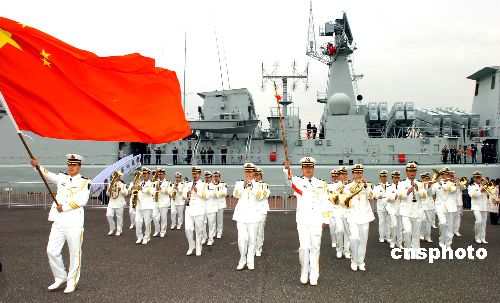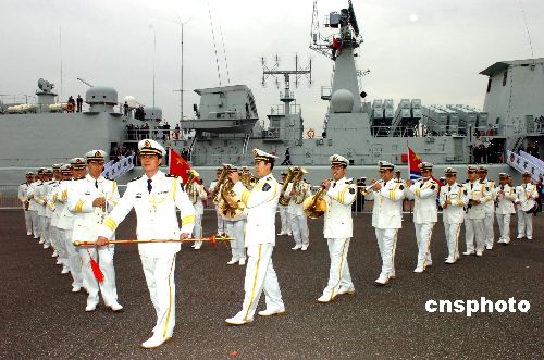 11月28日上午,中國(guó)海軍“深圳”號(hào)導(dǎo)彈驅(qū)逐艦抵達(dá)日本東京晴海碼頭,開(kāi)始對(duì)日本進(jìn)行正式友好訪問(wèn)。在日方舉行的歡迎儀式后,中國(guó)海軍軍樂(lè)團(tuán)在“深圳”號(hào)前進(jìn)行列隊(duì)表演。中新社發(fā) 滕劍峰 攝