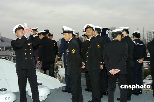 11月29日,中國(guó)“深圳”號(hào)導(dǎo)彈驅(qū)逐艦對(duì)日本的訪問(wèn)進(jìn)入第二天,中日海軍官兵互相參觀了對(duì)方的艦艇。圖為海上自衛(wèi)隊(duì)官兵在“深圳”號(hào)導(dǎo)彈驅(qū)逐艦甲板上參觀。中新社發(fā) 朱沿華 攝