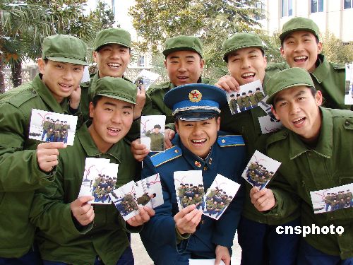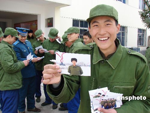 1月31日,春節(jié)臨近,濟(jì)南空軍某飛行學(xué)院為新兵們免費(fèi)拍攝軍旅生活照片。中新社發(fā) 耿國慶 攝