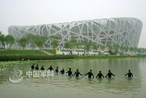 蛙人在“鳥巢”周圍水系進(jìn)行地毯式搜查