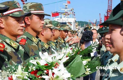 8月26日,浙江邊防總隊舉行儀式,歡迎執(zhí)行青島奧帆賽海上安全保衛(wèi)任務(wù)歸來的浙江邊防海警官兵。中新社發(fā) 何蔣勇 攝