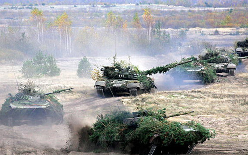 白俄羅斯軍隊(duì)的坦克參加演習(xí)。