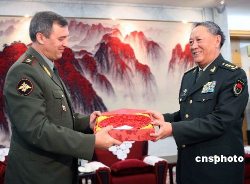 中央軍委委員、中國人民解放軍總參謀長陳炳德上將,10月24日下午在北京八一大樓會(huì)見來訪的俄羅斯武裝力量第一副總參謀長布魯京中將,雙方在友好的氣氛中進(jìn)行了交談。中新社發(fā) 宋吉河 攝