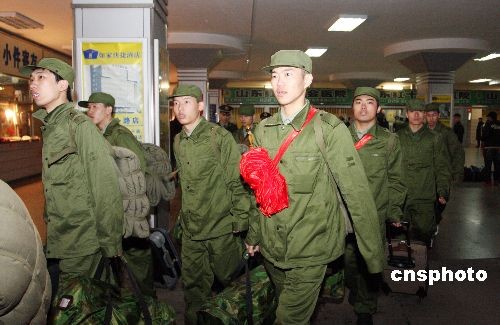 12月11日,來自江蘇、河北兩省的首批500余名新戰(zhàn)士抵達(dá)濟南軍區(qū)某部,開始軍旅生活。這些新戰(zhàn)士將集中進(jìn)行3個月的軍事強化訓(xùn)練,在完成社會青年向合格軍人的轉(zhuǎn)變后,充實到基層執(zhí)勤第一線,擔(dān)負(fù)起維護(hù)濟南社會穩(wěn)定、保衛(wèi)人民生命財產(chǎn)安全的神圣職責(zé)。中新社發(fā) 梁志杰 攝