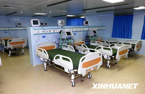 866岱山島船醫(yī)療設(shè)施完備、裝備先進、功能完善。船上有CT室、DR室、特診室、特檢室、口腔診療室、眼耳鼻喉診室、藥房、血庫、制氧站、中心負荷吸引(真空)系統(tǒng)和壓縮空氣系統(tǒng)等醫(yī)療保障系統(tǒng);配設(shè)多個手術(shù)室和護士站;設(shè)有重癥監(jiān)護病床(ICU)、重傷病床、燒傷病床、普通病床、隔離病床等各類病床數(shù)百張;船上還設(shè)有遠程醫(yī)療會診系統(tǒng);飛行甲板面積近千平方米,可供多種型號的直升機起降;配有多部特殊規(guī)格的電梯,供傷員轉(zhuǎn)運使用。硬件設(shè)施相當于陸上三甲醫(yī)院。