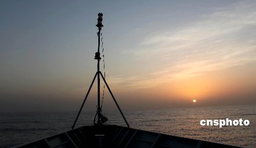 1月6日,中國海軍護(hù)航艦艇編隊順利抵達(dá)執(zhí)行護(hù)航任務(wù)的海域。圖為亞丁灣海上日出景觀。中新社發(fā) 孫自法 攝