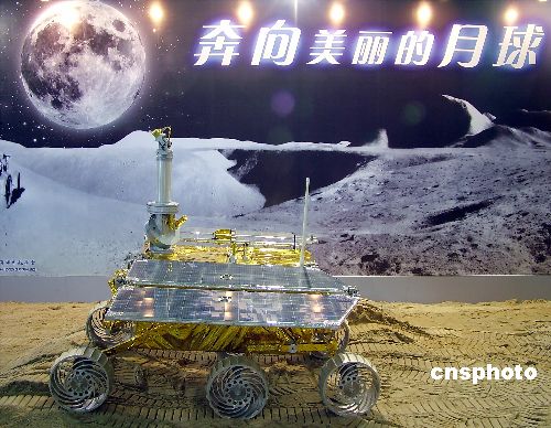 7月9日,腳踩6個輪子,站在“月球”表面,頭頂CCD相機四周轉(zhuǎn)動,巡視到的場景在電腦上即時傳送……在上海航空展中,“月球巡視探測器”表現(xiàn)不凡。據(jù)了解,經(jīng)過層層審批才得以在公眾前亮相的月球車,將于2012年“嫦娥工程”實現(xiàn)“落地”計劃后登陸月球。中新社發(fā) 紹常 攝