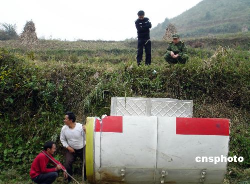 10月26日下午6時(shí),長(zhǎng)征三號(hào)甲運(yùn)載火箭殘骸外殼已拆卸完畢,有關(guān)部門(mén)在組織交通車(chē)輛和人員裝載回收。10月24日18時(shí)05分,我國(guó)在西昌衛(wèi)星發(fā)射中心用長(zhǎng)征三號(hào)甲運(yùn)載火箭將嫦娥一號(hào)成功送入太空。18時(shí)16分火箭殘骸安全按計(jì)劃墜落在貴州預(yù)定范圍。殘骸落于一民房,殘骸外殼落于玉米地,無(wú)人員受傷。中新社發(fā) 易勝武 攝