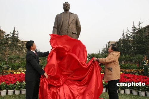 十一月十三日,中國運載火箭技術研究院為新中國十大元帥之一的聶榮臻塑像揭幕,以紀念聶榮臻為中國航天事業(yè)和國防科技事業(yè)所做出的卓越貢獻,迎接該院建院五十周年。聶榮臻之女聶力將軍(右)、中國航天科技集團公司總會計師吳艷華為聶榮臻銅像揭幕。中新社發(fā) 孫自法 攝
