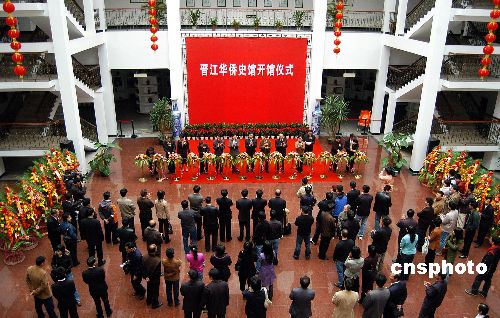 十二月五日,閩南“晉江華僑史館”在福建晉江博物館隆重開館。華僑史館共分為《海天萬里故園情—晉江華僑華人歷史展》和《晉臺緣港澳情—晉江港澳臺同胞展》兩個永久性展覽,展覽面積一千八百平方米,充分展示晉江先人飄洋過海,闖蕩打拼的奮斗歷程和積淀下來的拼搏文化,激勵更多的后人樹立和發(fā)揚(yáng)愛拼敢贏的晉江精神。中新社發(fā) 傅丹丹 攝