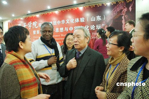 12月16日至18日,由中國國家漢辦主辦的全球孔子學院院長研修班中華文化體驗暨首屆“孔子思想與中華文化論壇”在山東大學舉行;顒悠陂g,來自18個國家34個孔子學院的44名外方院長赴孔子故里——山東曲阜,參觀考察了孔府、孔廟和孔子研究院,體驗中華文化,并出席首屆“孔子思想與中華文化論壇”,聆聽山東大學儒學研究中心著名教授丁冠之和傅有德教授主講的《孔子,我們共同的老師》、《論言說:中西差異及其根源》的演講。背景資料:孔子學院是中外合作建立的非營利性教育機構,其宗旨和使命是增進世界人民對中國語言和文化的了解,發(fā)展中國與外國的友好關系,促進世界多元文化發(fā)展,并以東方圣人孔子的名字命名。從2004年開始,中國已在64個國家和地區(qū)建立210所孔子學院(包括孔子課堂),其中125所已開班授課。此外,還有61個國家的200多個機構提出開辦申請。中新社發(fā) 金云 攝