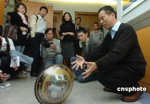 一月八日,二零零七年十二月剛剛當(dāng)選的中國(guó)工程院院士、著名空間機(jī)械人與智能控制專家、香港中文大學(xué)機(jī)械與自動(dòng)化工程學(xué)講座教授徐揚(yáng)生教授會(huì)見(jiàn)傳媒,介紹部分最新科研成果。中新社發(fā) 鄧慶樂(lè) 攝