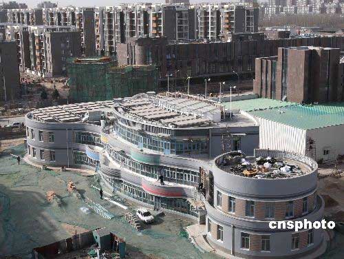 2月28日,北京眾多媒體參觀國奧村居住區(qū)。北京國奧村居住區(qū)內(nèi)的微能耗建筑幼兒園應(yīng)用太陽能采暖、太陽能熱水、太陽能光伏發(fā)電、風(fēng)力發(fā)電、智能化控制等22余項高新技術(shù)。中新社發(fā) 趙振清 攝