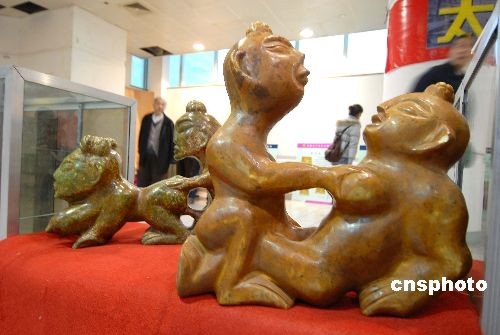 3月8日,30余件性文化展品出現(xiàn)在杭州世貿(mào)中心,受到不少市民關(guān)注。據(jù)悉,2008年首屆中國(guó)杭州品質(zhì)生活與生殖保健產(chǎn)品展覽會(huì)在杭舉行,展覽展出保健食品、生殖健康產(chǎn)品、生殖健康宣教制品等。中新社發(fā) 引煒 攝
