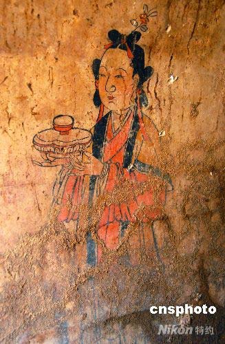4月28日,在重慶市永川區(qū)青峰鎮(zhèn)被發(fā)現(xiàn)的明代古墓群經(jīng)過(guò)考古專(zhuān)家的清理發(fā)掘,其大部分已出土。由于處于公路施工現(xiàn)場(chǎng),古墓群在被發(fā)現(xiàn)時(shí)已部分損壞,但其中最具價(jià)值的一個(gè)墓室幸得保留。該墓室內(nèi)壁繪滿(mǎn)精致壁畫(huà),色彩鮮艷?脊艑(zhuān)家稱(chēng),該明代古墓群極具考古價(jià)值,它的出土,對(duì)研究明代時(shí)期的巴渝文化具有重要作用。據(jù)悉,在經(jīng)過(guò)進(jìn)一步清理發(fā)掘后,該古墓群將被整體搬遷,妥善保存。 中新社發(fā) 楊振宇 攝