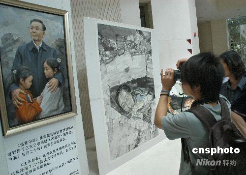 5月23日,“心系汶川·畫的慰問(wèn)——廣州美術(shù)學(xué)院師生美術(shù)作品特別展”在廣州美術(shù)學(xué)院美術(shù)館展出,638件作品是該校離退休老藝術(shù)家、在校師生和畢業(yè)生等為四川汶川大地震災(zāi)區(qū)捐出的力作,義賣后款項(xiàng)將全部支援地震災(zāi)區(qū)。中新社發(fā) 羅仰明 攝