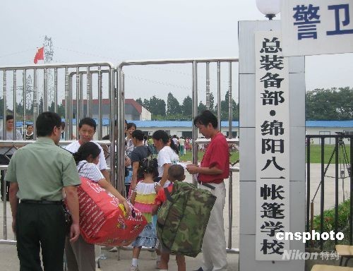8月20日,在汶川大地震中受損嚴(yán)重的四川省綿陽(yáng)市1000余所中小學(xué)全部開學(xué),其中板房學(xué)校有612所。圖為北川學(xué)生進(jìn)入由總裝備部出資修建的綿陽(yáng)八一帳蓬學(xué)校。據(jù)介紹,該學(xué)校將接納北川羌族自治縣曲山小學(xué)和劉漢希望小學(xué)的九百余名學(xué)生。中新社發(fā) 霍潺 攝