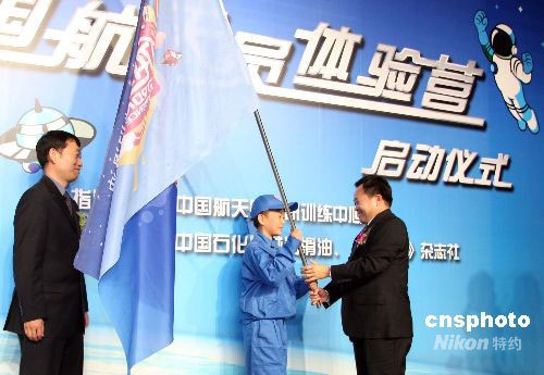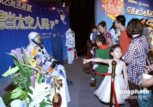9月23日,“中國航天員體驗(yàn)營”活動在北京天文館舉行啟動儀式,現(xiàn)場展出的航天員專用出征服倍受關(guān)注。體驗(yàn)營將通過全民海選方式選拔一批航天愛好者,于11月14日在中國航天城展開為期三天的體驗(yàn)活動。獲選的營員將首次走進(jìn)神七航天員的訓(xùn)練生活,體驗(yàn)真實(shí)的太空訓(xùn)練科目,一圓航天夢想。中新社發(fā) 廖文靜 攝