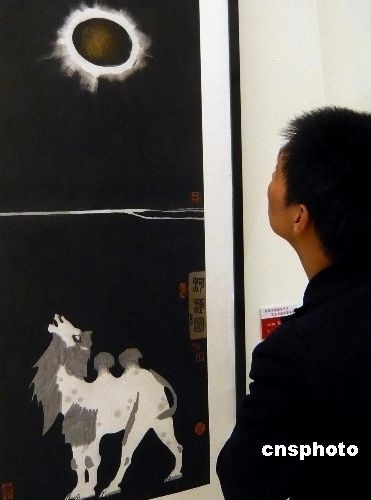 10月14日,在北京中國美術(shù)館展出的“首屆中國城市藝術(shù)書畫家提名展”吸引參觀者,該展由中國城市發(fā)展研究會(huì)城市藝術(shù)專業(yè)委員會(huì)主辦,展覽匯集了中國當(dāng)下具有較高藝術(shù)成就的書畫家的作品,旨在提升全國城市文化品味,促進(jìn)書畫家走向社會(huì),服務(wù)于社會(huì),是當(dāng)代書畫家參與經(jīng)濟(jì)發(fā)展,城市建設(shè),傳承民族文化的橋梁和紐帶。圖為展覽作品之一《大漠長河》。中新社發(fā) 錢興強(qiáng) 攝
