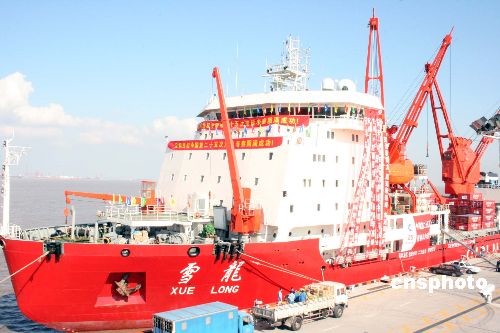 中國第二十五次南極科學考察隊將于十月二十日乘“雪龍”號極地考察船從上海浦東外高橋極地科考基地碼頭啟程赴南極?疾礻爩⒃谀蠘O長城站、中山站、內陸冰蓋和南大洋實施多項科學考察計劃,特別是將在南極內陸冰蓋最高點建設中國第一個南極內陸考察站——昆侖站。中新社發(fā) 陸從兵 攝