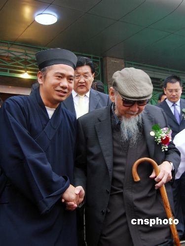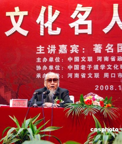 10月21日,著名國學(xué)大師文懷沙在名人講壇上縱論老子,博得全場陣陣掌聲。10月20日晚,“2008中國鹿邑國際老子文化節(jié)”在老子故里河南省鹿邑縣召開,98歲高齡的著名國學(xué)大師文懷沙出席了開幕式。據(jù)悉,本屆文化節(jié)由中國文聯(lián)、政協(xié)河南省委員會、中國國際文化傳播中心主辦,為期兩天,以“建設(shè)民族精神家園——尊道·貴德·和諧·發(fā)展”為主題,包括老子文化高層論壇、國學(xué)大師文懷沙報告會、經(jīng)貿(mào)合作與簽約儀式等活動。 鹿邑縣位于河南省東部,是道家學(xué)派創(chuàng)始人老子的故里,被稱為“道家之源,道教祖庭,李姓之根”。中新社發(fā) 蔣保慶 攝