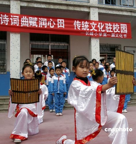 10月29日,山東威海長峰小學在校園內(nèi)以“詩詞曲賦潤心田 傳統(tǒng)文化駐校園”為主題開展校園文化節(jié)活動。在文化節(jié)上,學生們將在《論語》、《弟子規(guī)》等經(jīng)典課本所學、所悟、所得,在老師的指導下,編排成節(jié)目展示出來。 據(jù)介紹,兩年來,學校通過以經(jīng)典古文誦讀為突破口,使傳統(tǒng)文化常駐校園。中新社發(fā) 海云飛 攝