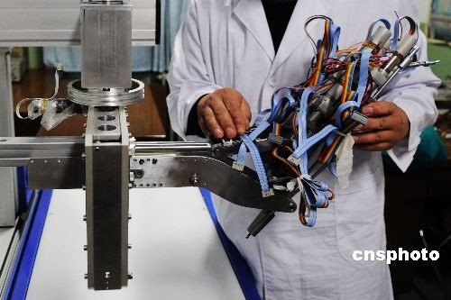 10月31日,鄭州大學第一附屬醫(yī)院展示其研制的具有自主知識產權的手術機器人。據介紹,這是一種智能機械手臂,醫(yī)生通過計算機來控制它做手術。目前,這種機械手已成功進行了動物試驗,該院計劃明年在臨床進行脊柱手術。中新社發(fā) 慎重 攝