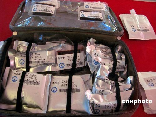 2008年11月19日消息,在北京軍博舉辦的《飛天壯歌——神舟七號(hào)載人航天飛行紀(jì)實(shí)攝影展覽》上,展出了由中國航天食品研發(fā)中心航天食品研究室研制的神舟七號(hào)載人航天飛行員使用的航天食品。中新社發(fā) 鄒憲 攝