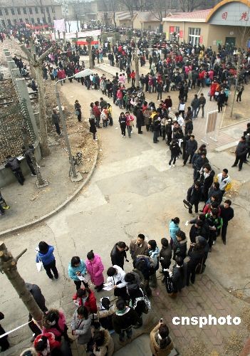 2月4日,成千上萬的考生從山東各地趕赴濟(jì)南報(bào)名參加省外院校藝術(shù)類專業(yè)考試。當(dāng)日,濟(jì)南鐵道職業(yè)技術(shù)學(xué)院內(nèi)的藝考報(bào)名現(xiàn)場,迎來首個(gè)藝考高峰日,天津體育學(xué)院、西南大學(xué)等8個(gè)院校的報(bào)名點(diǎn)前人頭攢動(dòng),等待報(bào)名的考生排起了百米長的隊(duì)伍。不少考生和家長清晨6點(diǎn)就趕來排隊(duì)。中新社發(fā) 王鋒鋒 攝
