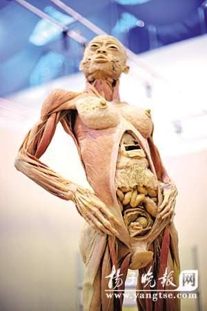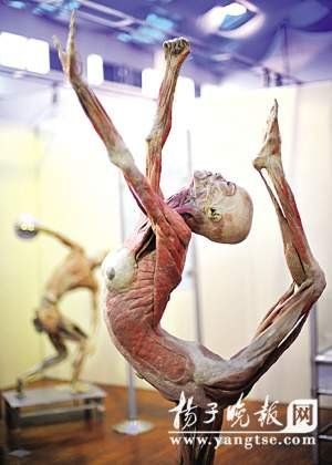 現(xiàn)場的講解員告訴記者,現(xiàn)在的標(biāo)本都是塑化技術(shù),這是上世紀70年代由德國人哈根思發(fā)明的,中國于2000年引進。過去用福爾馬林浸泡的標(biāo)本易變色、易變形,保存時間也不長。而塑化保存的標(biāo)本都是經(jīng)過了脫水、脫脂,所有現(xiàn)在我們所看到的都是肌肉組織,看起來也就更勻稱和美觀,而經(jīng)過這樣一項技術(shù),標(biāo)本可以保存500年之久,“可以稱得上現(xiàn)代木乃伊了。”
