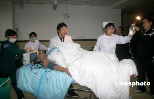 醫(yī)護(hù)人員將一名受重傷的船員送往急救室。