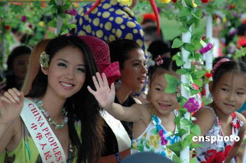 十一月十七日,參加第五十七屆世界小姐總決賽的一百多位佳麗參加了海南島歡樂節(jié)三亞分會(huì)場(chǎng)的活動(dòng),并在三亞市區(qū)巡游,與市民和游客們共享歡樂。中新社發(fā) 尹海明 攝