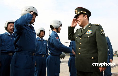圖為駐港部隊司令員王繼堂中將在石崗軍營出席空軍輪換交接儀式。