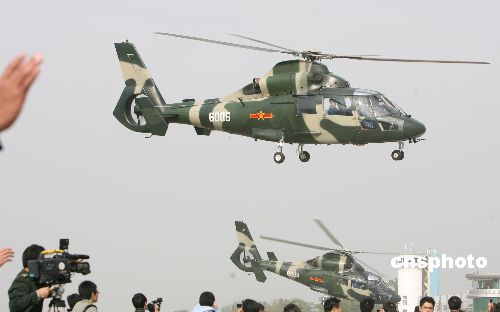 圖為輪換出港的直升機駛離空軍基地。