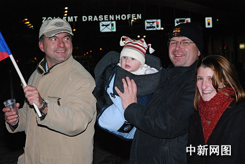 一個家住布爾諾市的捷克家庭特意驅(qū)車60公里在12月20日午夜來到捷奧邊境奧地利一側(cè)德拉申霍芬海關(guān),在零下5度的嚴(yán)寒中暢飲燙熱的紅葡萄酒,慶祝取消邊境檢查。