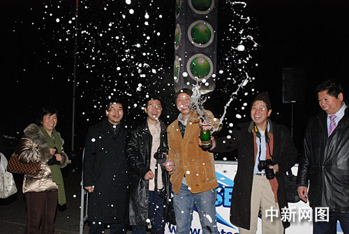 旅捷青田同鄉(xiāng)會會長鄭朝偉(右2) 帶領(lǐng)一組青田老鄉(xiāng)驅(qū)車230公里來到米庫洛夫參加12月20日夜晚申根東擴(kuò)慶典。