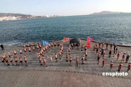 12月23日,山東威海冬泳協(xié)會(huì)組織近百名隊(duì)員在海邊舉行“迎奧運(yùn)冬泳健身”活動(dòng)。據(jù)介紹,參加活動(dòng)的人中最大年齡為75歲。中新社發(fā) 海云飛 攝
