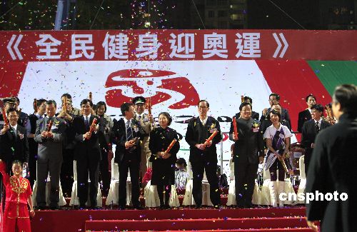 一月二十一日晚,香港舉行“全民健身迎奧運(yùn)”活動(dòng),慶祝奧運(yùn)倒計(jì)時(shí)二百天,特區(qū)民政事務(wù)局局長(zhǎng)曾德成、香港基本法委員會(huì)副主任梁愛詩(shī)、中聯(lián)辦青年工作部副部長(zhǎng)張春生等嘉賓及六千多名青少年參與活動(dòng)共迎奧運(yùn)。中新社發(fā) 王麗南 攝