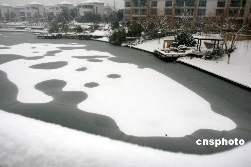 2008年1月27日,南京城南花神湖的冰面上,一幅幅圖畫般的“冰上雪”讓許多市民嘖嘖稱奇。南京連續(xù)的強(qiáng)降雪,給城南的花神湖披上了一件格外美麗的衣裳。中新社發(fā) 孫忠南 攝