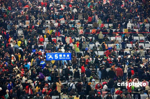 1月27日,湖北武昌火車站候車室內(nèi)擠滿了等待乘車的旅客。當日,受雨雪天氣影響,廣鐵集團湖南境內(nèi)京廣線供電接觸網(wǎng)多處斷電,電力機車無法通行,致使旅客列車出現(xiàn)多列晚點。武昌火車站采取措施,在新落成的候車室內(nèi)開通暖氣,確保滯留旅客不受凍。中新社發(fā) 宋建春 攝