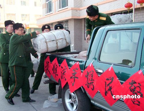 圖:牡丹江武警邊防官兵向南方災(zāi)區(qū)捐款捐物