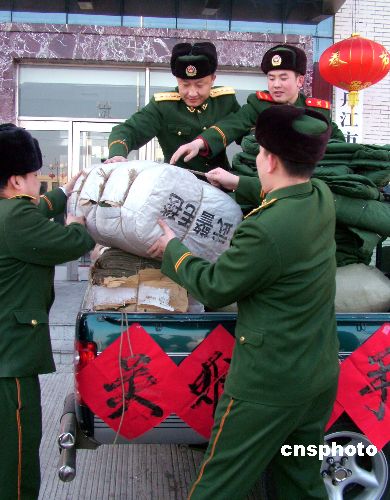 發(fā)表評論 2月3日,黑龍江省武警部隊牡丹江市邊防支隊所屬東寧、穆棱、綏芬河三個邊防縣(市)部隊官兵,開展為災(zāi)區(qū)人民捐款捐物等抗災(zāi)救助活動。中新社發(fā) 莊文斌 攝