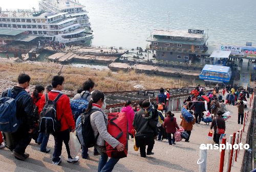2月14日,在三峽庫(kù)區(qū)腹地的重慶云陽港,旅客正乘船出行。當(dāng)天,三峽庫(kù)區(qū)出現(xiàn)節(jié)后水路運(yùn)輸高峰。三峽庫(kù)區(qū)強(qiáng)大的通航能力、相對(duì)低廉的運(yùn)輸價(jià)格,使水路成為庫(kù)區(qū)群眾出行的主要選擇。中新社發(fā) 劉小洋 攝